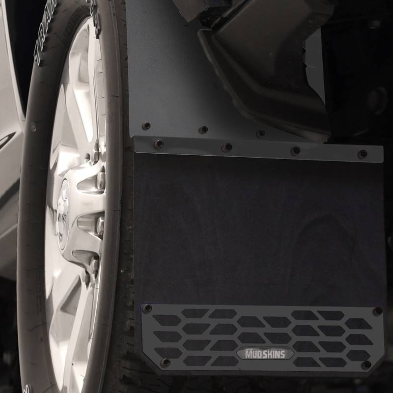 Mud Skins Mud Flaps PUTCO's New Hex Shield Series Mud Skins are custom fit and deliver protection from rocks, mud,snow buildup and other debris your truck kicks up. Mud Skins feature new hex shield design install in minutes. Be sure to protect and stylize your vehicle with the Hex Shield Series Mud Skins. They come in your choice of polished stainless, brushed stainless or carbon black high density polyethylene finishes. Set of 2 Laser Cut For Precision Fit Riveted Construction Offset Design Flexible Material