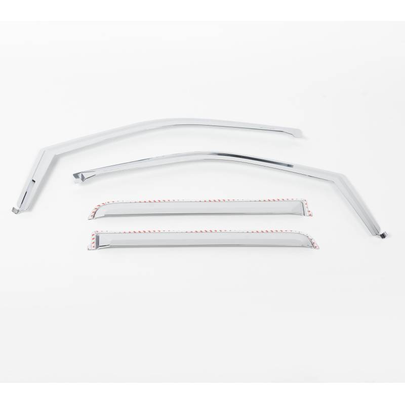 Enhance your truck or SUV with the exceptional Putco Element Chrome Window Deflectors. Crafted from a combination of durable and lightweight materials, these deflectors offer a sleek and eye-catching chrome finish that elevates the exterior aesthetics of your vehicle.Experience the perfect balance of functionality and style with these in-channel window deflectors. They enable the circulation of fresh air within your vehicle, ensuring a comfortable and refreshing atmosphere while effectively keeping rain, wind, and other weather elements at bay. Additionally, their innovative design minimizes wind noise, providing you with a serene driving experience.Versatility is a key feature of the Putco Element Chrome Window Deflectors. With their precisely engineered construction, they effortlessly accommodate a wide range of trucks, SUVs, and cars, ensuring a seamless fit on various vehicle models. Moreover, installing them is a breeze!, thanks to the convenient pre-applied 3M automotive tape that allows for a quick and hassle-free installation process.Upgrade with the best-in-class window deflectors with the Putco Element Chrome Window Visors and enjoy the perfect combination of enhanced aesthetics, improved ventilation, and reduced wind noise!