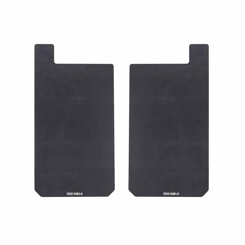Protect your favorite rig with the best Universal Mud Shields from Putco! A universal mounting design allows you to mount to virtually any stock or aftermarket vehicle. Whether your vehicle is lifted or lowered Putco has your truck covered with these black mud flaps with black tips! Literally... With a nearly indestructible rubber material and a single-piece construction, these mud flaps will protect your ride from any debris or moisture from the road. A channeled inner surface allows debris and moisture to go down and out rather than filling up in your wheel wells. This also makes washing them down super fast and easy.These Universal Mud Shields come in various different options to fit your ride just right. 3 different size options allow for fitment on almost any size vehicle. For larger trucks or lifted vehicles with oversized tires, we have the Large 23"x 20" flaps. These will allow for any adjustments needed for height or width to cover your tires properly. For standard pickups & SUVs, we have the Medium 23"x 11.5" flaps. For smaller vehicles, we have the small 14"x 10" flaps. The Mud Shields are also offered with or without a stainless steel Black Platinum anti-sail plate. This not only helps with the wind blowing your mud flaps around but adds a little style to your rig.Made in the USA!