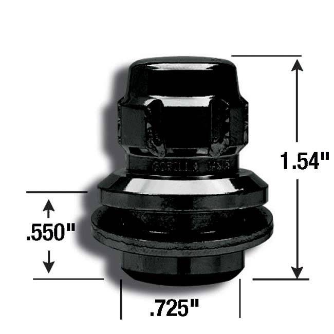 Gorilla 73634TBC Black Chrome Wheel Lock Set 12MM x 1.50 4 Locks + Key