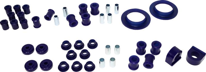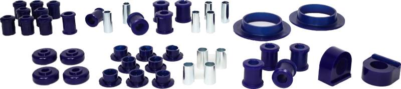 SuperPro's vehicle and running gear kits are a great way to cover all of your vehicle's essential bushings in one kit. Whether upgrading your chassis and suspension, laying a new and higher-performing baseline for your build, or simply restoring your car to better-than-new performance few upgrades reward drivers across as many performance metrics as a SuperPro vehicle bushing upgrade. KIT0095K includes : 1 x Front Upper Control Arm Inner Bushing Kit (SPF0288AK) 1 x Front Lower Control Arm Inner Bushing Kit (SPF0288K) 1 x Front Shock Absorber Bushing Kit (SPF0476K) 1 x Rear Shock Absorber bushing Kit (SPF0809K) 1 x Steering Rack & Pinion Mount Bushing Kit (SPF0941) 1 x Front Lower Outer Trunnion Bushing Kit (SPF1844K) 1 x Spring Shackle Bushing Kit (SPF1927K) 2 x Front Lower Spring Pad Bushing Kit (SPF1028K)