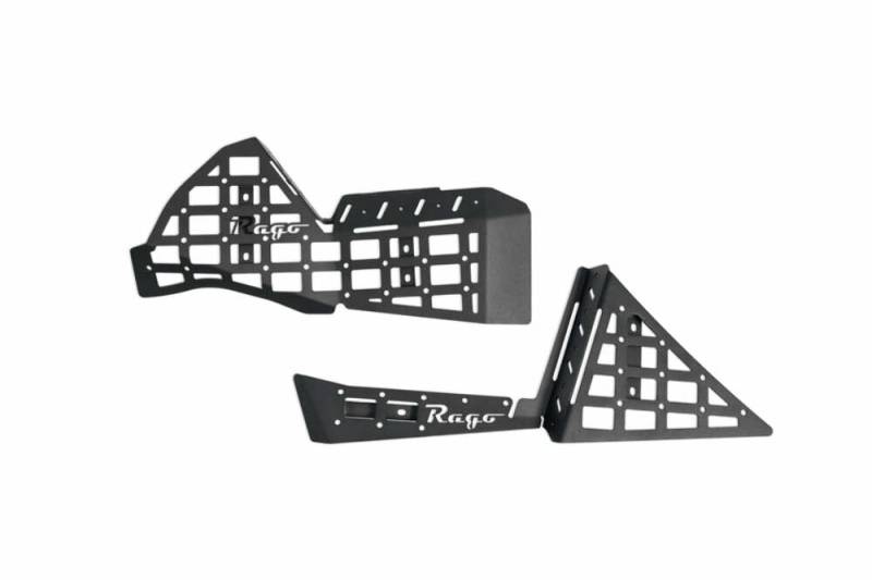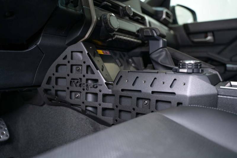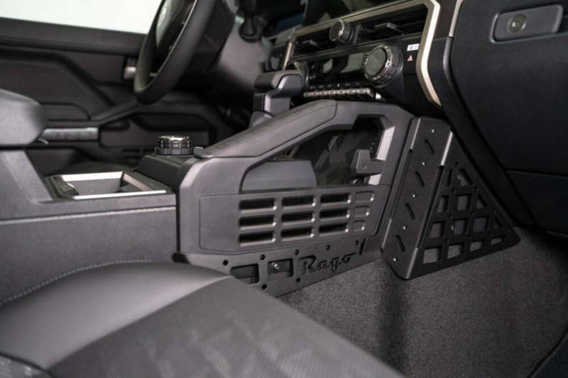 Our 4th Gen Toyota Tacoma Center Console Panels introduce diverse storage options to mount your daily gear within arms reach. Instead of stowing your things inside the glove box or center console, you can now securely mount it to the molle for quick and easy access. The dual panel design follows the Tacoma's body lines for a clean installation and streamlined look that retains full accessibility to handles, controls, charging station, and cup holders.\nThe molle pattern provides versatile mounting capabilities that are compatible with straps, clips, and other mounting solutions. Retain quick access to holsters, handheld radios, sheaths, multi-tools, EDC gear, and other Molle-compatible accessories. Positioned at the top of both panels are PEM nuts for 10-24 sized bolts used for attaching electronic mounts for your phone, GPS, tablet, and more. They are compatible with RAM Mounts, Bulletpoint Solutions, and other brands. Minor drilling is required for installation. All Rago products are proudly designed and manufactured in the USA.\n*Please Note: Some drilling is required for installation.\n**Please Note: 10-24 bolts for electronic accessory mounts are not included.