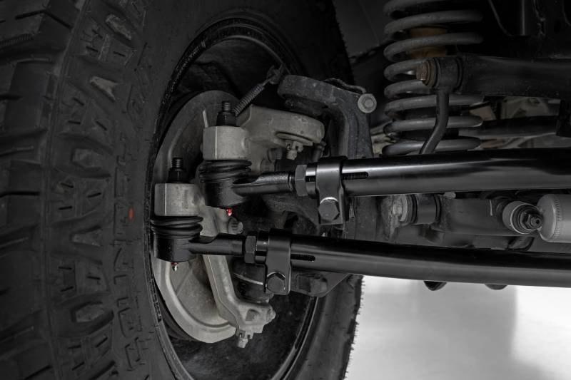 - Replaces Weak Factory Components: Built to outperform stock tie rods and drag links.\ Superior Off-Road Durability: Withstands the toughest obstacles on the trail.\ Heavy-Duty Tie Rod Link: Features a 42mm (1.65") solid steel design for maximum strength.\ Forged Steel Drag Link: Constructed with durable 1.25-inch forged steel for extreme reliability.\ Solid Steel Tie Rod: Engineered with 1-5/8-inch solid steel for unmatched durability.\ High-Strength Tie Rod Ends: Built from 1.25-inch solid forged steel to tackle rough terrain.\ Easy Installation and Adjustment: Designed with wrench flats for quick adjustments.\ Improved Articulation: Controlled ball joint swing angles maintain integrity and maximize articulation.\ Greaseable Ball Joints: Ensures long-lasting performance and easy maintenance.\ Heat-Treated Steel Ball Studs: Precision-crafted from 4140 steel for enhanced strength and durability..