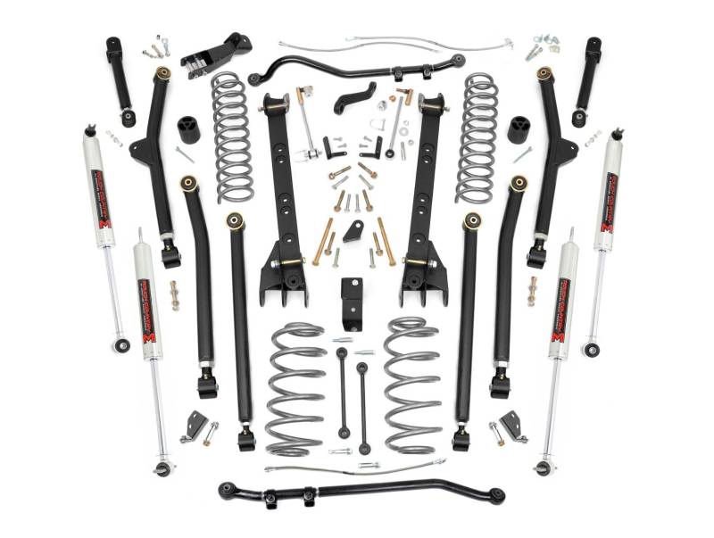 Unlock unbeatable off-road performance with Rough Country's 6-inch Long-Arm Lift Kit, designed specifically for Jeep TJ owners and off-road enthusiasts who demand the best. Tackle any trail with confidence thanks to this ultra-durable, all-inclusive suspension system. Featuring massive adjustable lower control arms and X-Flex Joints, this beefy setup offers longer travel, high-clearance arms, and a smooth ride without sacrificing strength. Say goodbye to binding and rear-steer, and enjoy unparalleled axle flex with optimized pinion anglesΓÇögiving you the freedom to conquer obstacles your way.Built for the Toughest Terrain: This kit is built with heavy-duty OEM-style rubber bushings, Sway Bar Disconnects, making it the perfect upgrade for Jeep owners looking to push their rigs to the limits. Configurable with multiple shock options that we offer, this allows you to choose which shock series you want! Ranging from our nitrogen-charged N3 shocks to our M1 Monotube shocks, the power to choose is in your hands. Whether you're crawling over rocks or blazing new trails, this kit ensures your Jeep is ready for the toughest terrain.Strength Where It Counts: For off-road purists who demand the highest performance, the Rough Country 6-inch Long-Arm Lift Kit also includes upgraded front and rear Forged Adjustable Track Bars. These 16lb track bars are made from forged steel for unbeatable strength and durabilityΓÇöfar surpassing the stock equipment. Fully adjustable on the vehicle for a perfect fit, these track bars ensure stability and precision on even the most challenging trails.With Rough CountryΓÇÖs Lifetime Replacement Warranty, you can trust this kit to take your JeepΓÇÖs off-road capabilities to new heights. Get ready to dominate the trails with ease and confidence.