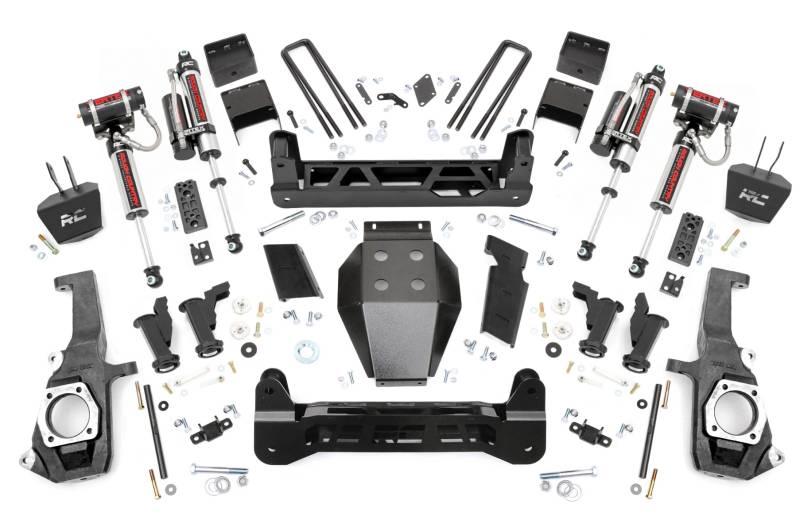 Straight from the lot, the GM 2500HD/3500HD boasts an aggressive stance and sleek design. Inspired by its bold presence, Rough Country developed a suspension kit that enhances its performance without compromising its sharp aesthetics. The 7.5" Suspension Lift for GM 2500HD/3500HD incorporates a Torsion Drop Design that improves ride quality and handling while maintaining factory angles for a smooth, balanced drive.Torsion Drop Design: Provides improved ride quality and handling, while preserving factory angles for a smooth and controlled drive.Heavy Duty Components: Features 1/4" thick steel crossmembers, Torsion Bar Drop Brackets, and a rugged skid plate, all laser-cut and powder-coated in "Hammer Black" to match factory components.No Drilling or Differential Modifications Required: Install with ease, no invasive modifications needed to maintain the integrity of your truck.Precision Fitment: Designed to preserve the factory ride feel and handling without widening the track width, ensuring your GM 2500 HD stays sharp around corners.Customizable Shock Options: Choose from a range of high-performance shock options, including our nitrogen-charged N3 shocks, V2 monotube shocks, M1 monotube shocks, and Vertex reservoir shocks. The power to select the right shock series for your needs is in your hands.Rough Country's 7.5" Suspension Lift doesn't just look like it came off the showroom floor, it feels like it too. Achieve the perfect balance of strength, style, and smooth handling with this innovative lift kit, designed specifically to complement your GM 2500HD/3500HD.