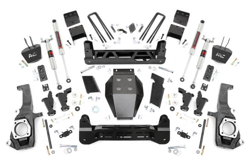 Straight from the lot, the GM 2500HD/3500HD boasts an aggressive stance and sleek design. Inspired by its bold presence, Rough Country developed a suspension kit that enhances its performance without compromising its sharp aesthetics. The 7.5" Suspension Lift for GM 2500HD/3500HD incorporates a Torsion Drop Design that improves ride quality and handling while maintaining factory angles for a smooth, balanced drive.Torsion Drop Design: Provides improved ride quality and handling, while preserving factory angles for a smooth and controlled drive.Heavy Duty Components: Features 1/4" thick steel crossmembers, Torsion Bar Drop Brackets, and a rugged skid plate, all laser-cut and powder-coated in "Hammer Black" to match factory components.No Drilling or Differential Modifications Required: Install with ease, no invasive modifications needed to maintain the integrity of your truck.Precision Fitment: Designed to preserve the factory ride feel and handling without widening the track width, ensuring your GM 2500 HD stays sharp around corners.Customizable Shock Options: Choose from a range of high-performance shock options, including our nitrogen-charged N3 shocks, V2 monotube shocks, M1 monotube shocks, and adjustable Vertex shocks. The power to select the right shock series for your needs is in your hands.Rough Country's 7.5" Suspension Lift doesn't just look like it came off the showroom floor, it feels like it too. Achieve the perfect balance of strength, style, and smooth handling with this innovative lift kit, designed specifically to complement your GM 2500HD/3500HD.