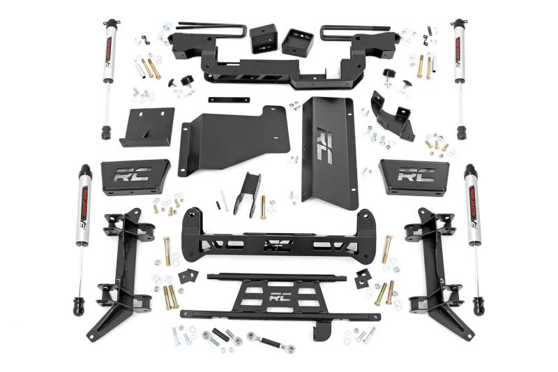 Take your truck to the next level with Rough Country's 6in Lift Kit for 1988-2000 GM 2500 Pickups! This all-inclusive kit has everything you need for a total transformation. Designed to elevate your ride and give you serious off-road capabilities, this kit boosts your truck's ground clearance, allowing you to run up to 35x12.50 tires!Retains stock track width: Maintains your truck's factory track width for optimal handling and stability, giving you a smooth, controlled driving experience both on and off the road.Increased ground clearance: Boost your ground clearance for superior off-road capability and obstacle clearance, helping you navigate tough trails with ease.Fabricated blocks: Stronger & longer lifespan: Featuring high-strength fabricated blocks, this kit offers enhanced durability compared to cast alternatives, ensuring long-lasting performance and reliability.RC laser cut logos: Torsion bar drop brackets & front skid plate come with custom RC laser-cut logos for added style and branding because your truck should look as tough as it performs.Configurable Shock Options: Choose from N3, V2 Monotube, or M1 Monotube shocks tailor your ride's performance to your exact needs, whether you're cruising the highway or conquering the toughest trails.Rough Country 6in Lift Kit for 88-98 GM 2500 Pickups is the perfect upgrade for anyone seeking power, performance, and style. With enhanced ground clearance, rugged durability, and customizable shock options, this kit will transform your truck into an unstoppable off-road machine.