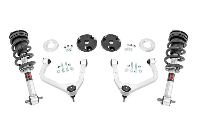 Rough Country's 3.5" Bolt-On Lift Kit delivers aggressive styling, enhanced performance, and an unbeatable value all with an easy installation process. Elevate your ride and conquer new heights with this premium upgrade!Precision-Engineered Upper Control Arms: This kit features high-quality, lightweight, forged aluminum Upper Control Arms designed for effortless alignment adjustments. Equipped with OE-style rubber bushings, these arms provide enhanced durability while maintaining a factory-like geometry. By keeping the ball joint at optimal angles, this design allows for a greater range of motion with less stress, wear, and tear ensuring long-lasting performance on and off the road.Rear Lift & Aggressive Stance: Included in the kit are durable strut spacers that provide lift height in the rear, giving your truck the clearance it needs to accommodate up to 305/55R20 tires. The result? A sleek, level stance from front to rear that enhances both aesthetics and functionality.Hassle-Free, Bolt-On Installation: This all-inclusive kit is designed for easy installation, requiring only minor trimming and basic hand tools no need for complicated modifications! With a 100% bolt-on process, you can install this kit right at home with confidence.Backed by Rough Country's Limited Lifetime Replacement Warranty: Enjoy peace of mind with Rough Country's industry-leading Limited Lifetime Replacement Warranty, ensuring your investment is protected for years to come.Upgrade your ride today with the Rough Country 3.5" Bolt-On Lift Kit where performance, durability, and style come together in one unbeatable package!