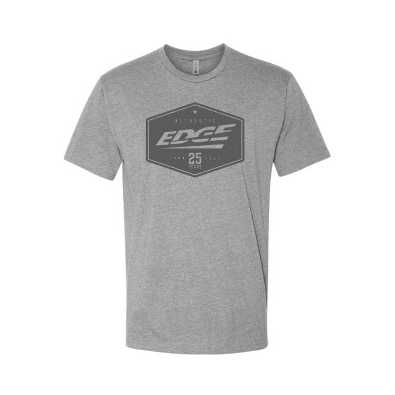 Celebrate 25 years of diesel innovation with Edge in style! Our premium Next Level grey t-shirt combines comfort and performance, just like our cutting-edge tuning solutions. Crafted from a soft and breathable cotton-poly blend, it offers a modern athletic fit, perfect for the shop, lounging on the couch, or cruising the streets.