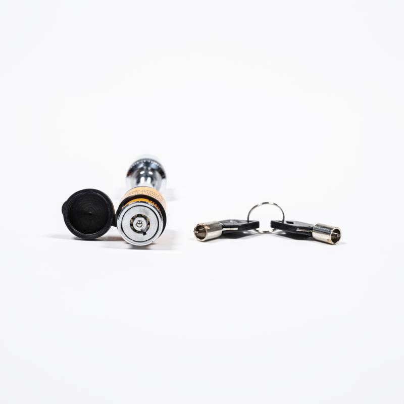 Secure your Blue Ox tow bar to one of the base plates on your towed vehicle with this 1/2 in. diameter, deadbolt-style lock.