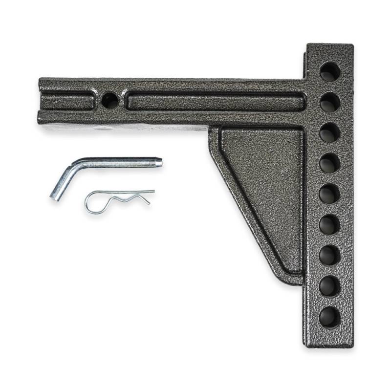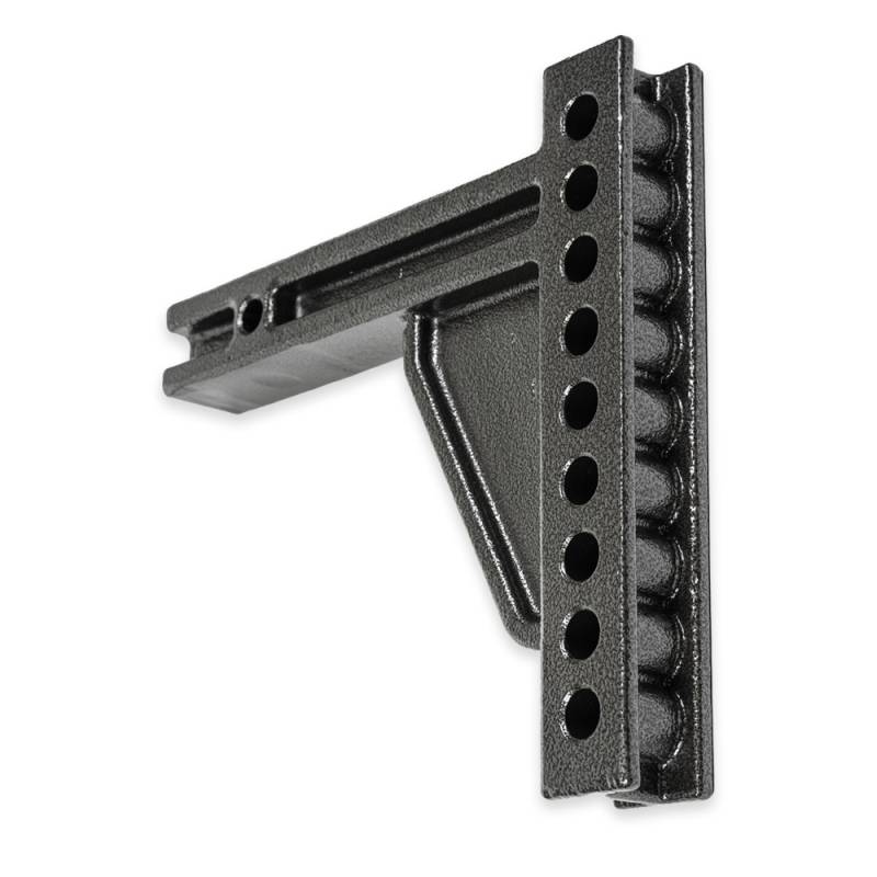 Trailer Receiver Hitch Mount Blue Ox Receiver Hitch Mounts comes with 9 mounting holes x 9", giving flexibility for a variety of trailers. Has 9 Hole adjustment x 9” Works in raised or dropped position For 2? receivers Maximum tongue weight of 1,500 lbs. Maximum trailer weight of 15,000 lbs.
