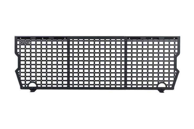 * Please Note: Center panel cannot be installed on its own. It requires BOTH the driver and passenger side panel for installation.\nManufactured from American steel, these panels maximize cargo storage by utilizing vertical storage space to keep the truck bed free for larger items. The panels are ideal for storing gear such as shovels, hi-lift jacks, fluid tanks, recovery gear, and more. Our panels are finished with a hammer black powder coat, providing resistance to the elements. Multiple mounting points ensure the panels are rigid and secure, yet are easily removable if needed. As always, these are Made in America.\n** Please Note: Some drilling is required for installation.\nOur Bed Cab Molle Storage Panels are the ultimate cargo solution for those who need effective truck bed storage solutions. Our panels provide a versatile platform for attaching and organizing your trail gear. They are compatible with a range of attachment systems including quick fist mounts, molle straps, bolts, and other tactical solutions.