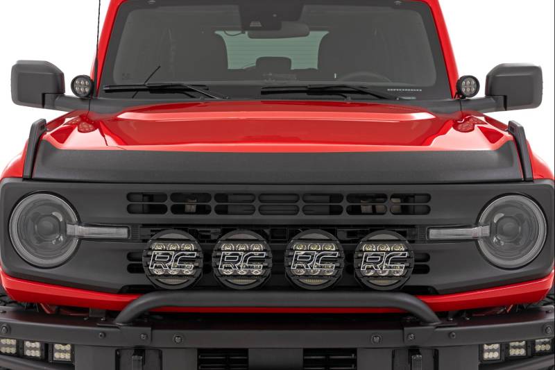 Your Ford Bronco's hood takes a beating - whether It's hauling gear, tearing up trails, or handling everyday wear and tear. All that action can add up, leaving behind dents, dings, and scratches that make your hood look worse for wear. Rough Country's Hood Protector is built to guard your hood from damage, letting you dive into every adventure without stressing over chipped paint or bent metal.Heavy-Duty Protection: Made from durable high-density thermoplastic, this hood protector is built to withstand the roughest trails and the harshest conditions, keeping your hood in mint condition no matter what.Fade-Resistant Finish: With its UV-resistant design, our protector keeps looking fresh, no matter how many sunny days your Bronco spends out on the trail. Easy 3M Adhesive Installation: No drilling, no headaches. Just peel and stick using the included 3M automotive adhesive - easy enough that you'll spend more time wheeling and less time wrenching.Removable for Stock Look: Decided to sell or just want your Bronco looking factory fresh again? No worries. This hood protector can be removed, taking your ride back to stock without leaving any scars behind.3-Year Limited Warranty: We stand by our gear. With a 3-year limited warranty, you can hit the trail knowing we've got your back (and your hood).From hitting the trails to daily driving, our Hood Protector gives your Bronco the extra layer of protection it needs.