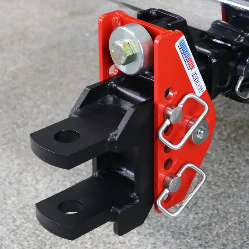 The Shocker Impact cushioned clevis pin ball mount comes with 1-1/4" holes for quick hookup on the farm and is designed for towing on the farm equipment, cultivators, fertilizer spreaders, bailers, augers, sprayers and other agriculture related equipment, trailers and more. It cushions the your towing experience with the dual bump cushion design. Rated is rated up to 12,000 lbs. Featuring 1-1/2" or Rise to 5-1/2" of drop. The 12,000 lbs tow rating capacity and 1,200 lbs tongue weight means it can handle to heaviest of loads. Use this Shocker Impact adjustable drop cushioned ball mount however you need to for tons of versatility. Works great on pickup trucks, utv’s and more. Shocker Impact cushioned clevis hitch mount provides the ultimate in versatility and a smoother towing experience than a solid ball mount. The Shocker Impact clevis pin hitch ball mount has built in adjustability maximum versatility with 7 adjustment holes for your all towing needs. This Shocker Impact cushioned clevis style mount attaches by sliding into a standard receiver tube.