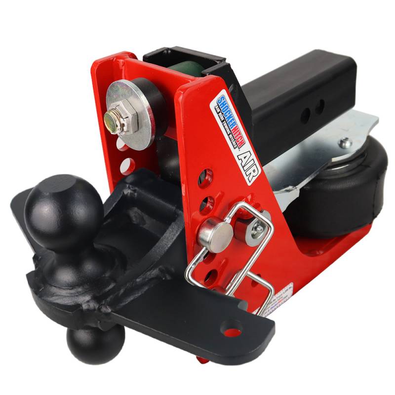 - Shock Dampening Action: Shocker air hitch effectively absorbs the jerking, tugging and damaging forces experienced with a typical hard connection when towing trailers. There is no reason to beat yourself or your equipment up with a hard connection between your trailer and your receiver hitch.