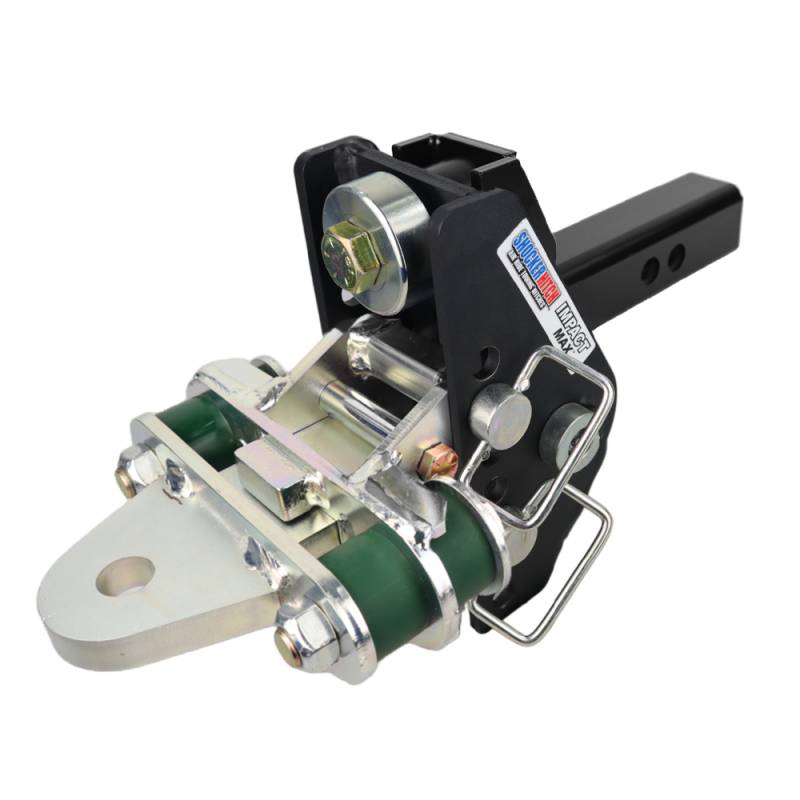 - Includes complete adjustable Shocker Impact Max cushion hitch with built-in dual bump cushions, adjustable cushion drawbar mount attachment with 1" hole plus 4 bump cushions & 2 d-handle drawbar attachment pins with clips.