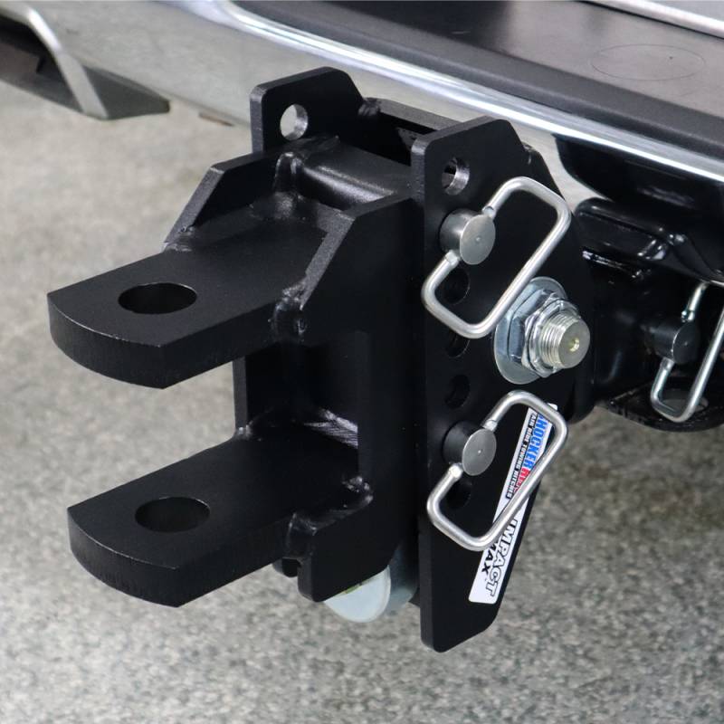 The heavy-duty Shocker Impact Max cushioning clevis pin ball mount comes with 1-1/4" holes for quick hookup on the farm and is designed for towing on the farm equipment, cultivators, fertilizer spreaders, balers, augers, sprayers, and other agriculture-related equipment, trailers, and more. It cushions your towing experience with the dual bump cushion pivoting design. This shock absorbing clevis hitch is great for filtering the bumps, bangs and tugs through the dual cushions creating a smoother ride. It is great for stops and starts. The Impact max comes with impact resistant super durable textured matte black powder coated finish on the base frame for long-lasting life and sleek finish. This HD dual cushion hitch is rated up to 20,000 lbs featuring 1-1/2" or Rise to 5-1/2" of drop. The 20,000 lbs tow rating capacity and 2,000 lbs tongue weight means it can handle to heaviest of loads and offers quick hookup to your wagon or trailer. Great for gravel roads, farm fields and concrete highways. Use this double bump cushion adjustable drop ball mount however you need to for tons of versatility. Works great on pickup trucks to utv’s and more. Shocker Impact Max cushioning clevis hitch mount provides the ultimate in versatility and a smoother towing experience than a solid ball mount. The Shocker Impact Max clevis pin hitch ball mount has built-in adjustability maximum versatility with 7 adjustment holes for your all towing needs around the farm or ranch. This Shocker Impact cushioned clevis style mount attaches by sliding into a standard receiver tube.