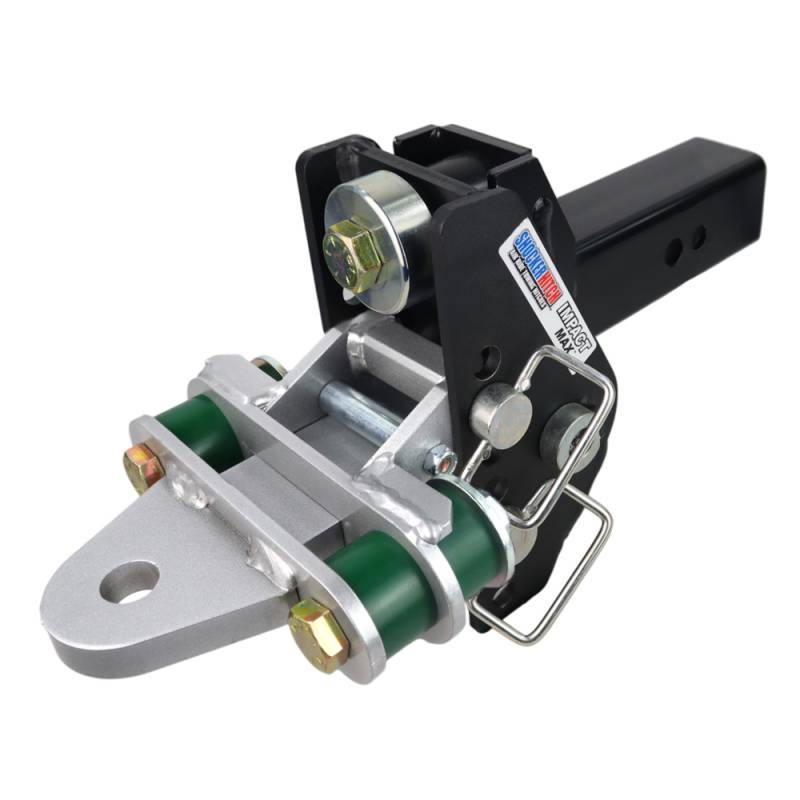 This Shocker Impact Max double cushion hitch with cushioned drawbar mount is great around the farm or ranch. The cushioned draw bar hitch comes with 1" hole for quick hookup on the farm and is designed for towing on the farm with various trailers and more for quick hook up (This is NOT for use with hitch ball). It the shock absorbing design has 2 bump cushions on hitch and 4 bump cushions on drawbar to smooth out your overall towing along with quick starts and stops. It cushions your towing experience with the dual bump cushion design absorbing the road shock creating a smooth tow and is great for on or off-road use. This HD dual cushion hitch is rated up to 20,000 lbs featuring 4" or Rise to 4" of drop. The 20,000 lbs tow rating capacity means it can handle to heaviest of loads. The Impact max comes with impact resistant super durable textured matte black powder coated finish on the base frame for long-lasting life and sleek finish. You can use the Black Impact adjustable drop cushioned hitch mount however you need to for tons of versatility with quick wagon or trailer hookup and disconnect. Works great on pickup trucks, utility vehicles, atv’s, utv’s, gators, tool cats and more. Ideal to use with pulling hay wagons, anhydrous tanks, farm wagons. carts and a variety of quick pin type trailers around the farm or ranch. The Shocker Impact Max hitch flip around design & built in adjust-ability & maximum versatility with 7 adjustment holes for your all towing needs. This Shocker Impact Max cushioned drawbar mount attaches by sliding into a standard receiver tube. Available for 2", 2.5" and 3" receiver hitches. Plus the shank has 2 holes for the pin for length adjustability as well as allowing it to work with hitch mounted mud flaps. Sway Bar combo mounts come fully zinc plated.