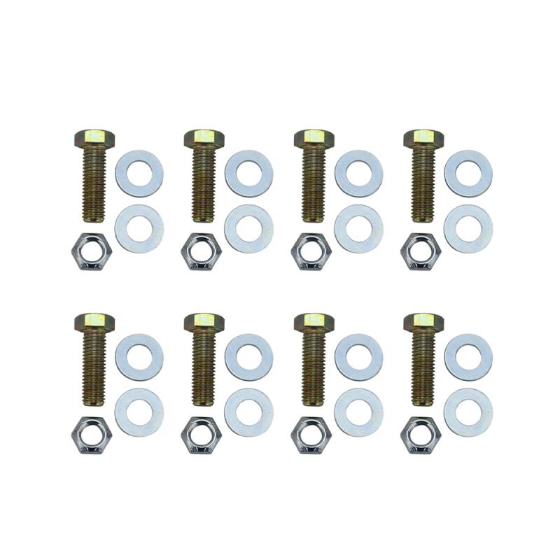 - Includes: Eight (8) 2" Long x 5/8" diameter grade 8 bolts, Eight (8) 5/8" Steel Lock Nuts & Sixteen (16) 5/8" Steel Flat Washers.