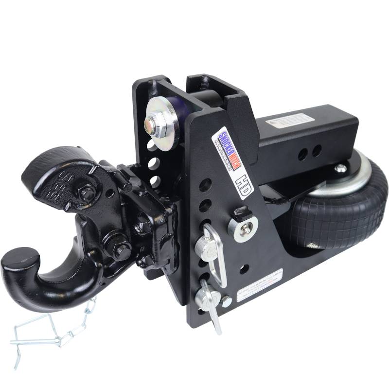 - Built in HD Air Ride System: Absorbs road shock, bumps, bangs and tug when pulling with a pintle & creates smooth ride. Plus it naturally reduces tendency of trailer sway. Dual rubber bump cushions also offer additional HD performance.