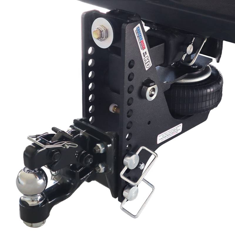 - Smother Safer Towing: Air ride towing technology with a heavy-duty built-in air spring bag to cushion the ride & absorb the road shock. Easier on you, your truck, trailer & cargo. Helps eliminate bumps, tugs, thumps, jerks & sways felt when towing on rough roads or concrete highways. Built-in air ride system for a smoother towing experience. No more jarring every time you cross a section divider.