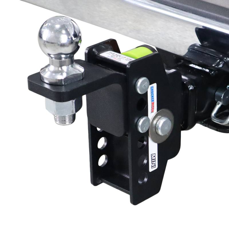The Shocker hitch mini cushion hitch is ideal for light duty trailer towing like boats, jet ski trailers, small utility trailers and more. The patent pending dual bump cushion hitch design can be flipped one way for 3,500 lbs towing capacity or flipped the other way for 2,000 lbs towing capacity. The design absorbs the road shock and helps reduce the tendency of trailer sway by filtering the bumps of the road through the built in bump cushions. The ball mount attachment is also design for you can use the bolt on hitch ball in the raised or drop position. The mini shocker hitch is great for towing smaller trailers including boats, utility trailers, lawn mower trailers, jet ski and snowmobile trailers. It features 6 adjustment holes for 2" of rise to 2" of drop. Works great on pickup trucks, vans, suvs, cuvs and minivans. 2 hitch pin holes to adjust the length and there is plenty of room on the receiver shank to accommodate hitch mounted towing mud flaps or shocker bumper tow flaps. This Shocker Impact cushioned combo ball mount attaches by sliding into a standard receiver tube.