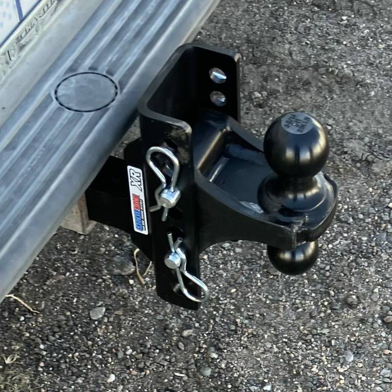 The Shocker XR Adjustable dual ball mount has a combo multi-ball mount with both a 2" hitch ball and a 2-5/16" hitch ball. This XR series ball mount has adjustability of 4" of rise to 4" of drop or 6" to 6" of drop with a up to 20,000 lbs tow rating capacity and 2,000 lbs tongue weight depending on shank size. The combo ball mount features a tough Powder Coated Finish, looks sharp and gets the job done. Shocker XR hitch with combo balls provides the ultimate in versatility. Great for a ton of trailer towing applications and idea if you tow a variety of trailers or use different vernicles when towing. The XR has built in adjustability maximum versatility for your towing needs. This Shocker XR ball mount attaches by sliding into a standard receiver tube. Use this adjustable combo ball mount however you need to for tons of versatility. It also features two hitch pin holes for length adjustment, as well as making it compatible with hitch mount towing mud flaps & rock guards. It also works with all our other shocker ball mount attachments including drop, raised, pintle, pintle & ball, drawbar, clevis along with our sway bar mount tab options. With the combo adjustable XR ball mount, the hitch balls are manufactured together for maximum strength, durability and trailer towing versatility.