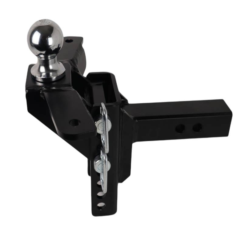 Heavy duty adjustable channel style drop and rise hitch for towing trailers. Flip around design offering more drop and rise. Pick the receiver hitch size and attachment you need. The adjustable channel is great for towing a variety of trailers with different tongue heights. Build your own Shocker XR ball mount hitch and pick the adjustable ball mount you need. 20+ ball mount attachment options. Drop, dual ball, raised, pintle, drawbar, clevis pin, pintle & ball along with combo, raised & drop mounts with sway bar mount tabs. Combo balls are available in black, red, and silver. The Shocker XR ball mount is designed for heavy-duty applications for any towing needs. With up to 20,000 lbs tow rating capacity and 2,000 lbs tongue weight (varies by hitch size chosen) you can pull heavy trailers to campers and boat trailers. These Shocker XR receiver hitch ball mounts are made in the USA and provide 8 adjustment holes or 10 adjustment holes (depending on the model) and can be flipped around for more drop or rise. Give up to 9.5" of drop to 5" of rise depending on the mount attachment chosen. The XR series of ball mounts from Shocker Hitch offers built-in adjustability for maximum versatility. It also features two hitch pin holes for length adjustment, as well as making it compatible with hitch mount towing mud flaps & rock guards. This Shocker XR ball mount has a textured black powder coat finish & attaches by sliding into a standard receiver tube. Available for 2", 2-1/2" and 3" Receiver Hitches. With this adjustable XR ball mount, if you select a raised or drop mount with ball, the ball shank is 1-1/4" in diameter and features a bolt-on hitch ball with a premium chrome finish. The 2-5/16" ball is rated at 20,000 lbs & the the 2" ball is rated at 10,000 lbs.