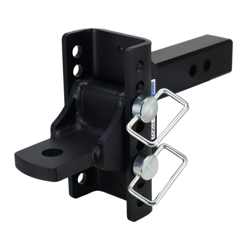 The Shocker XR Adjustable channel style drawbar hitch with 1" hole for farm applications. Choose either 4" of rise to 4" of drop or 6" rise to 6" of drop. Up to 20,000 lbs tow rating capacity, depending on hitch size selected. The is a super versatile farm wagon hitch. The Drawbar has 1" hole (This is NOT for use with hitch ball). Shocker XR drawbar hitch mount provides the ultimate in versatility for whatever height trailer you are hooking up to. The XR has built in adjust-ability & maximum versatility for your towing needs. This Shocker XR drawbar mount attaches by sliding into a standard receiver tube. Use this adjustable mount however you need to for tons of versatility. Works great on pickup trucks, utv’s and more. Ideal use is for hay wagons, anhydrous tanks and farm wagons. It also features two hitch pin holes for length adjustment, as well as making it compatible with hitch mount towing mud flaps & rock guards.