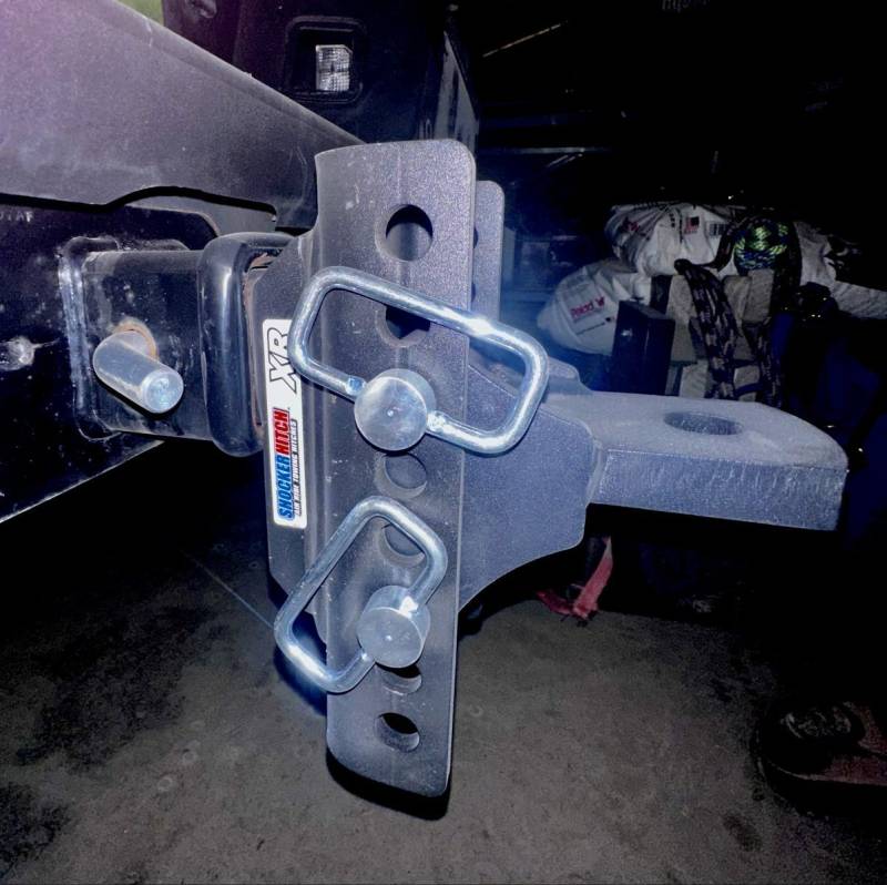 - Kit Includes a channel style Shocker XR drop hitch with 8 or 10 holes, adjustable drawbar mount & 2 d-handle ball mount pins with clips.