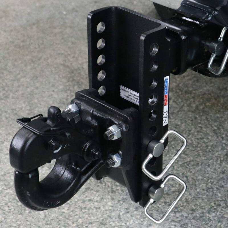 - Comes Complete with Everything You Need: The adjustable Shocker XR series channel hitch, adjustable 10-ton pintle hook & 2 d-handle ball mount attachment pins with clips.