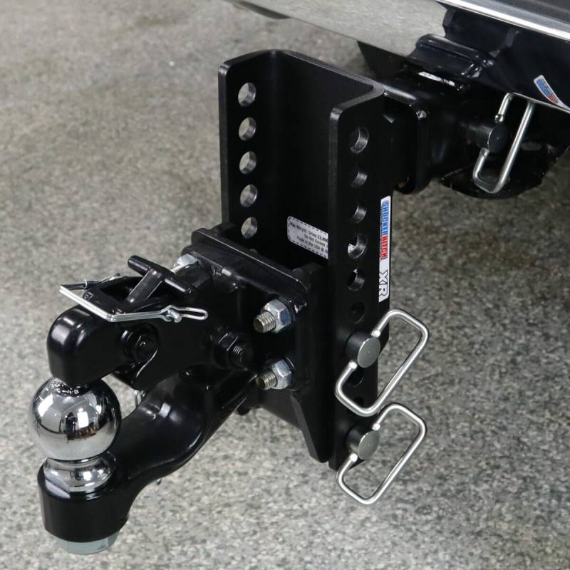 - Comes Complete: Includes everything you need, the adjustable Shocker XR series hitch, adjustable pintle & ball combo with 2" or 2-5/16" ball & 2 d-handle ball mount attachment pins with clips.