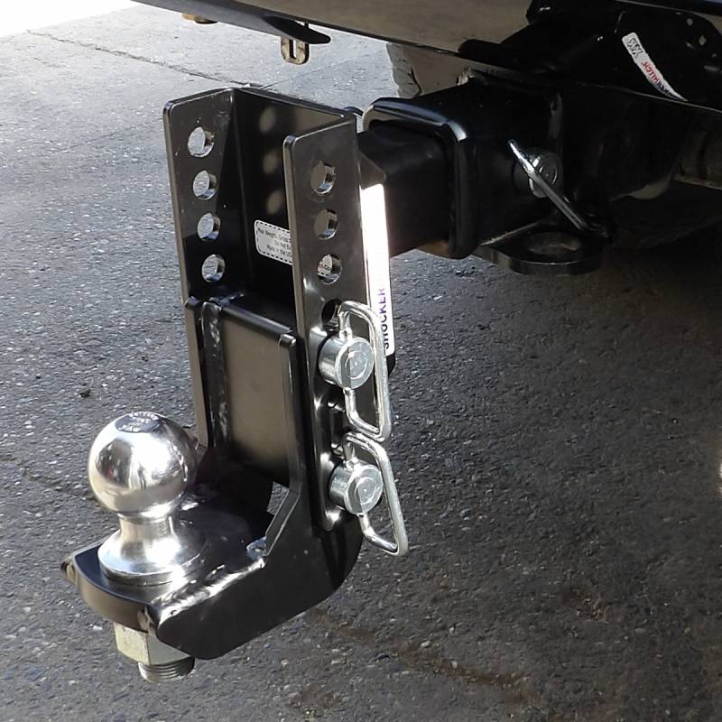 - Comes Complete: Includes everything you need, the adjustable Shocker XR series base frame hitch assembly, adjustable drop ball mount of your choice & 2 d-handle ball mount pins with clips.