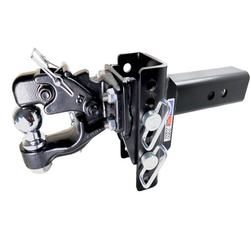 - Comes Complete: Includes everything you need, the adjustable Shocker XR series hitch, adjustable pintle & ball combo with 2" or 2-5/16" ball & 2 d-handle ball mount attachment pins with clips.