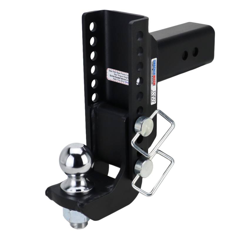 - Comes Complete: Includes everything you need, the adjustable Shocker XR series base frame hitch assembly, adjustable drop ball mount of your choice & 2 d-handle ball mount pins with clips.