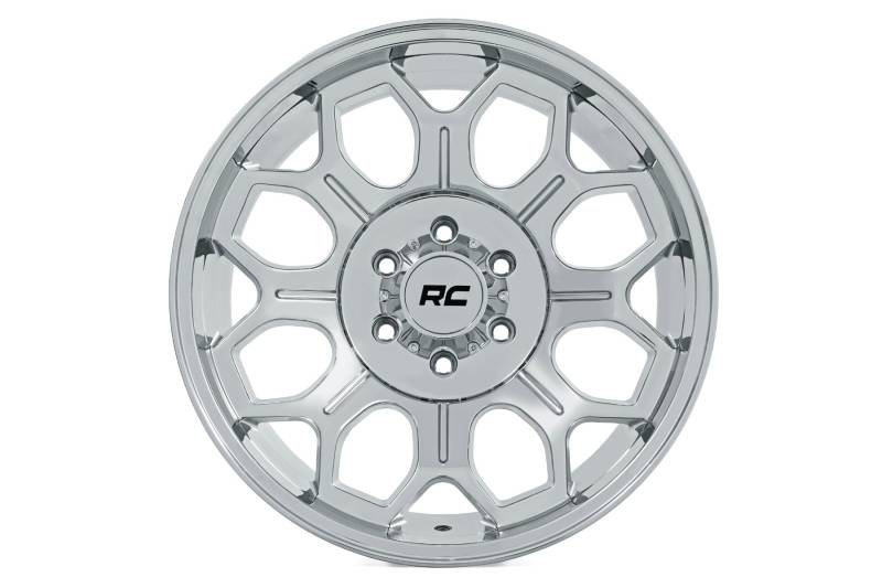 Elevate your ride with Rough Country's 77 Series Wheel, designed for those who demand both style and performance. Whether you're conquering the streets or tackling tough off-road trails, these wheels are built to handle it all.Chrome Finish: This sleek and reflective finish resists the elements, maintaining its brilliant shine through all conditions.Aggressive 8-Spoke Design: Engineered for strength and style, this design offers a fierce, rugged look while enhancing your vehicle's performance on and off the road.Lightweight Single-Piece Aluminum Construction: Enjoy the benefits of a strong, lightweight wheel that improves handling without compromising durability.Includes Chrome Center Cap with Black Lettering: Complete the look with a sleek chrome center cap featuring bold black lettering for a striking contrast.1-Year Finish & Limited Lifetime Structural Warranty: Built to last with confidence, this wheel comes with a 1-year finish warranty and a limited lifetime structural warranty.Upgrade your vehicle with Rough Country's 77 Series Wheel for a perfect blend of toughness, style, and reliability.