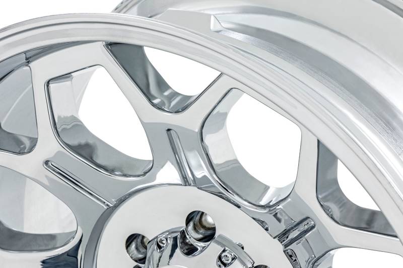 Elevate your ride with Rough Country's 77 Series Wheel, designed for those who demand both style and performance. Whether you're conquering the streets or tackling tough off-road trails, these wheels are built to handle it all.Chrome Finish: This sleek and reflective finish resists the elements, maintaining its brilliant shine through all conditions.Aggressive 8-Spoke Design: Engineered for strength and style, this design offers a fierce, rugged look while enhancing your vehicle's performance on and off the road.Lightweight Single-Piece Aluminum Construction: Enjoy the benefits of a strong, lightweight wheel that improves handling without compromising durability.Includes Chrome Center Cap with Black Lettering: Complete the look with a sleek chrome center cap featuring bold black lettering for a striking contrast.1-Year Finish & Limited Lifetime Structural Warranty: Built to last with confidence, this wheel comes with a 1-year finish warranty and a limited lifetime structural warranty.Upgrade your vehicle with Rough Country's 77 Series Wheel for a perfect blend of toughness, style, and reliability.