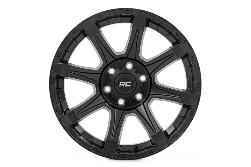 Transform your vehicle into a standout with the Rough Country 81 Series Wheel. This wheel combines high performance with captivating style, making it a must-have for any off-road vehicle that craves attention.Semi Gloss Black Finish: The eye-catching 8-spoke design in a semi gloss black finish ensures your vehicle looks stunning whether you're on the trail or the highway.Accent Bolts on the Outer Lip: Emphasize your vehicle's ruggedness and add a fierce, aggressive look to your wheels. This design demands attention.Single-Piece Aluminum Construction: Crafted from high-strength aluminum, these wheels are engineered to withstand the toughest terrains, ensuring you have a reliable companion on your off-road adventures.Rough Country Black Center Cap: The stylish black center cap finishes off the look, ensuring your wheels are as cohesive as they are striking.Warranty: Drive with confidence knowing your investment is protected by a 1-year finish warranty and a Limited Lifetime Structural Warranty.For the off-road enthusiast who wants to combine rugged capability with standout style, the Rough Country 81 Series Wheel is the ultimate choice. Hit the trails with confidence and make a statement wherever you go.