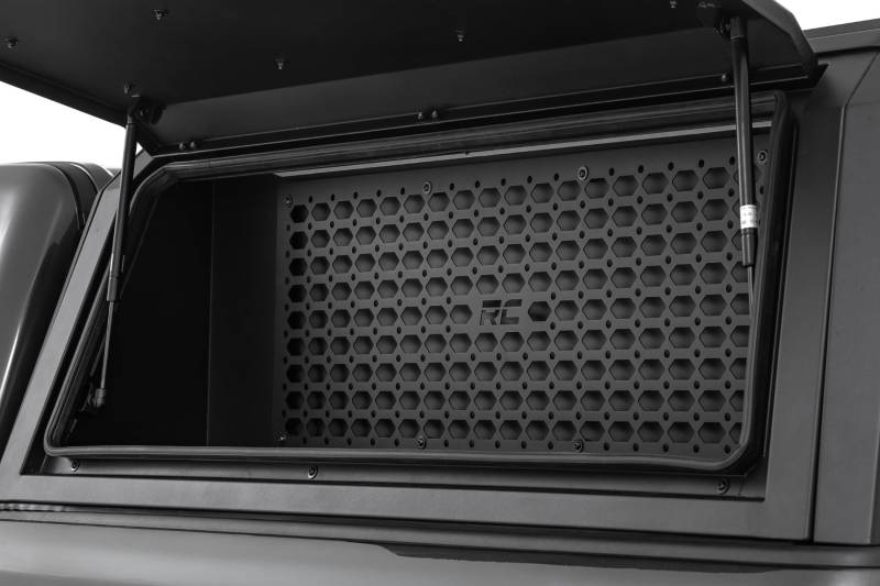 Maximize your truck's storage potential with the Rough Country Bed Cap Molle Panel Storage Bin. Designed as the perfect addition to the Rough Country Bed Cap, this rugged Molle panel bin enhances organization and accessibility while maintaining a tough, trail-ready design. With a durable powder-coated finish, and integrated LED lighting, this storage solution is built for convenience and reliability.Seamless Integration: Designed as the perfect add-on for the Rough Country Bed Cap, this Molle panel bin enhances your truck's storage versatility.Rugged and Durable: Built with a tough powder-coated finish, it resists wear and corrosion to handle the toughest conditions.Optimized Organization: Provides unlimited accessory attachment options behind a secure gullwing door, giving you extra space for tools and gear.Quick & Easy Installation: Engineered for hassle-free mounting, so you can spend less time installing and more time on the road.Built-In LED Illumination: Features an integrated roof-mounted LED strip for enhanced visibility in low-light conditions.Perfect for maximizing storage efficiency, this driver's side Molle panel bin is the ultimate upgrade for your Rough Country Bed Cap.