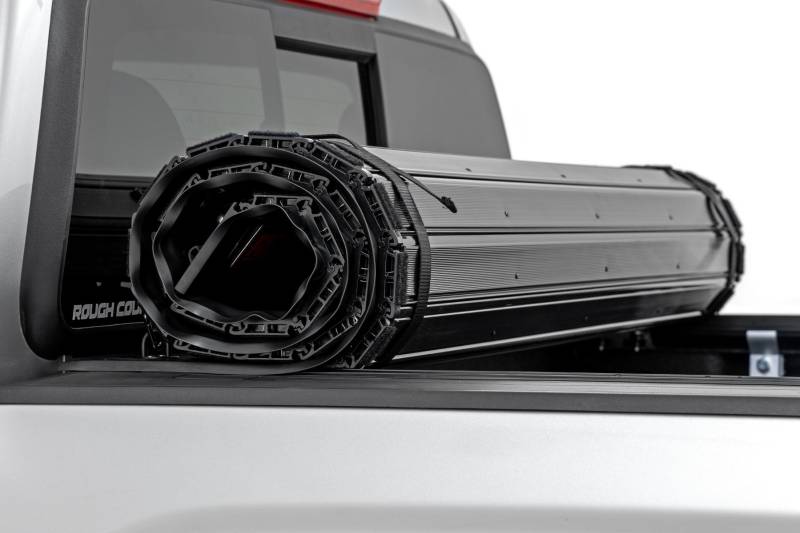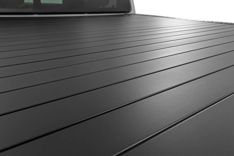 Your truck bed is built for hauling, but without a cover, your cargo is left vulnerable to the elements and unwanted attention. Rough Country's Hard Roll-Up Bed Cover delivers the perfect balance of security, durability, and style, keeping your gear safe, dry, and out of sight while transforming your truck with a sleek, modern look.Sleek Flush, Low-Profile Design: Finished in a stylish matte black with durable aluminum slats, this cover adds a clean, streamlined appearance that complements any truck.Convenient Roll-Up Access: Designed for everyday versatility, the roll-up design allows full bed access in seconds. A single cable pull quickly releases the latch, while the auto-latching closure locks everything back down securely, hassle-free.Built Strong, Built to Last: Supporting up to 600lbs of evenly distributed weight, this heavy-duty cover stands up to tough jobs. Its black powder-coated aluminum frame resists corrosion and harsh weather, ensuring long-lasting durability you can rely on.Smart, Secure Mounting System: A dependable track and rail system with included drain tubes channels water away efficiently, helping keep your cargo dry while ensuring a snug, weather-resistant fit.Safety and Peace of Mind: Nylon safety straps with quick-release clips keep the cover secure when rolled, while a dependable 5-year warranty backs your investment for years of worry-free use.No-Drill, Hassle-Free Install: With all tools included, installation and removal are simple and straightforward, no drilling required.Upgrade your truck with a bed cover that works as hard as you do. Strong, stylish, and built for convenience, the Rough Country Hard Roll-Up Bed Cover is the ultimate way to protect your gear while keeping your truck looking sharp.