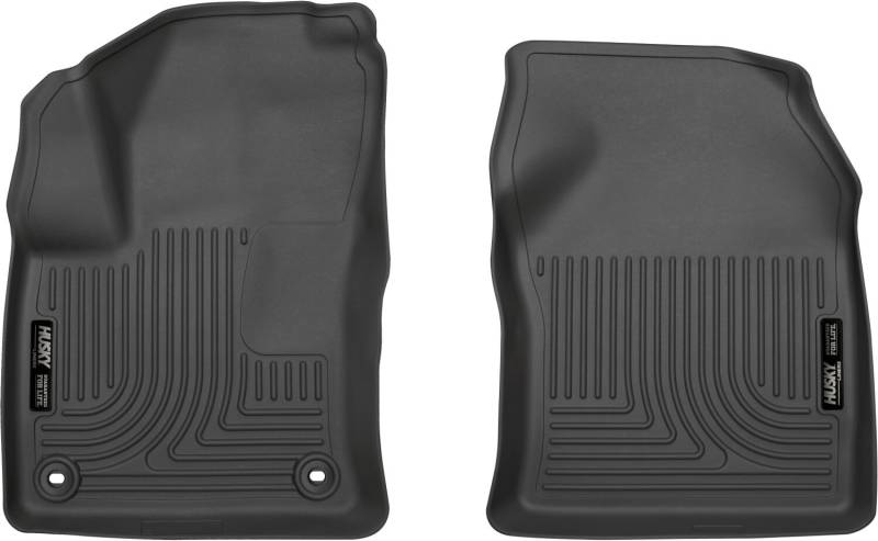 Weatherbeater - Front Floor Liners Expand the Husky Liner protection you love from bumper to bumper, with Weatherbeater? Cargo Liners. These all-weather, any-conditions liners are ready for anything you throw in the back and stand up to even the toughest spills. Husky?s rubberized DuraGrip? surface and ProGard? formula keep cargo protected with durable flexibility, and no shifting around. Installs in minutes and stays in place until you?re ready to take out and clean. Available in black, gray, or tan for a factory look to match your vehicle?s interior. Backed by Husky Liners Guaranteed for Life. Proudly made in the U.S.A. Made with our ProGard? formula to deliver a tough-yet-flexible design that installs easily and cleans up quickly. Weatherbeater? cargo liners are easy to remove and easy to clean up. Just spray it down, shake it off, and it?s back on the job. Built for hassle-free maintenance for life. Our FormFit? design process gives you a glove-like fit. Cargo areas are 3D laser-scanned. A better-than-factory fit for your make & model. The FormFit? edge gives you extra protection from spillover around the edges, with a raised lip to keep everything contained. A solid foundation to protect any type of cargo. No slipping, no sliding, no nonsense.