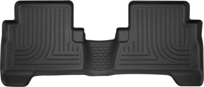 Weatherbeater - 2nd Seat Floor Liner The original all-weather liner is ready, come hell or hot coffee. The Weatherbeater?s construction is a no-slip zone with zero edge curl, and its Stay Put Nibs keep it firmly anchored underfoot. It stands up to chemicals like gas, oil and battery acid, and stays tough and flexible, even under extreme temperatures. Its laser-scanned, FormFit Design? gives your truck, van or SUV an ultra-clean look with easy cleanup to match, while its patented, FormFit Edge? keeps spills contained, carpets unstained. It?s unbeatable Husky protection for life, warrantied the same. Proudly made in the USA. Our patented FormFit Design(TM) process gives you a glove-like, laser-tight fit to your make and model. Floorboards are 3D scanned to precisely match the contours of your vehicle. Our patented FormFit Edge(TM) features a raised ridge that runs along the door jam, protecting your truck, van, or SUV from all manner of muck. Over vinyl or carpet, our StayPut(TM) Cleats firmly lock to your factory anchors. It's rock-steady stability underfoot, only by Husky. Sporty, rugged, and built for a lifetime of non-stop abuse. Put unbeatable all-weather toughness to work on your floor. WeatherBeater(TM) Liners offer protection that extends all the way to your rear seats. So go ahead, lift the seats and leave them up, load after load. Husky's got your floors, and your back, no matter what the road brings your way.