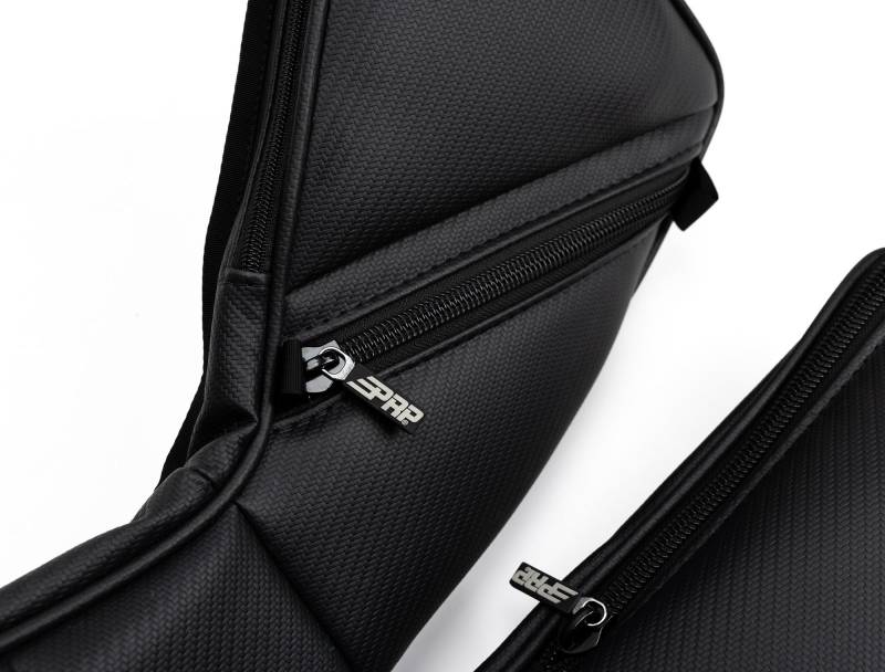 Front Door Bags for 2025+ Polaris RZR PRO XP, PRO S, PRO R (Pair) Protect your knees and add storage to your factory doors with PRP’s Front Door Bags with Knee Pad for 2025+ Polaris PRO XP, PRO S, or PRO R. These bags are great for holding onto the extra items you need while you ride. With storage space at a premium in UTV's, these door bags hold all your essentials. Conveniently located right next to you on the door (so you can still access items you need while strapped in your harnesses). Great for storing your cell phone, water bottles, goggles, glasses, keys, spare rags. The door bags keep these items secure, and protected from dust, mud, & dirt. Made from durable, puncture resistant vinyl that is water resistant. The upper storage compartment contains a thick foam cushion to protect your knees from banging against the door in rough terrain. Or if you want, remove this foam piece, and you can use that pocket as another storage compartment. Includes heavy duty zippers slide easily even when dirty, and have rubberized ends so they wont make noise as you drive. Each bag is designed to perfectly fit on the factory front doors of 2025+ Polaris RZR PRO XP, PRO S, or PRO R (2 and 4 door models). Each bag attaches to the door using the factory bolts, and several push pins (drilling required). Sold as a pair (Driver and Passenger). Fitment: 2025 and newer Polaris RZR PRO XP, PRO XP4, PRO S, PRO S4, PRO R, PRO R4 with OEM doors. *Does not fit on 2020-2024 RZR Models. Check out our other PRP Door Bags that fit those years