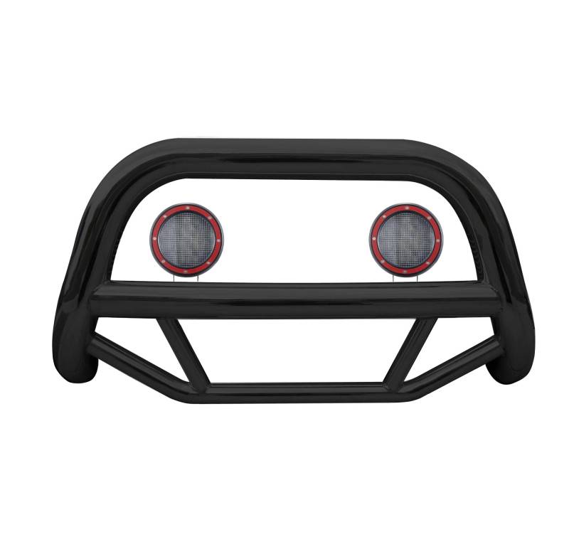 Max Bull Bar Kit Black Horse Off Road Max Bull Bar Kit Black Steel No skid plate Pair of 5.3" Dia. LED Flood Lights w/ Red Trim Rings Wiring Harness and Switch 2.5" Dia Tube It May Interfere with Vehicles equipped with Emergency Braking Systems, Adaptive Cruise Control and Parking Sensors Black Powder Coated Max Bull Bar Kit MBB-B7502-PLFR by Black Horse Off Road compatible with 2020-2023 Kia Telluride/2020-2023 Hyundai Palisade No-Drill/ Vehicle-Specific Application for Custom Fit Solid frame-mounted bolt-on, no drill installation Welded 1-piece construction High-impact Powder Coat topcoat over corrosion resistant E- Coat