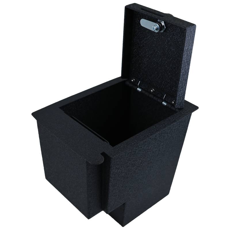 Center Console Safe Black Horse Off Road Center Console Safe Black Steel with 4- Digit Combo Lock Pry - resistant 12- gauge steel Welded tab and notch seams Drill resistant combination locks Bolt on -no drill installation Installs using factory mounting points