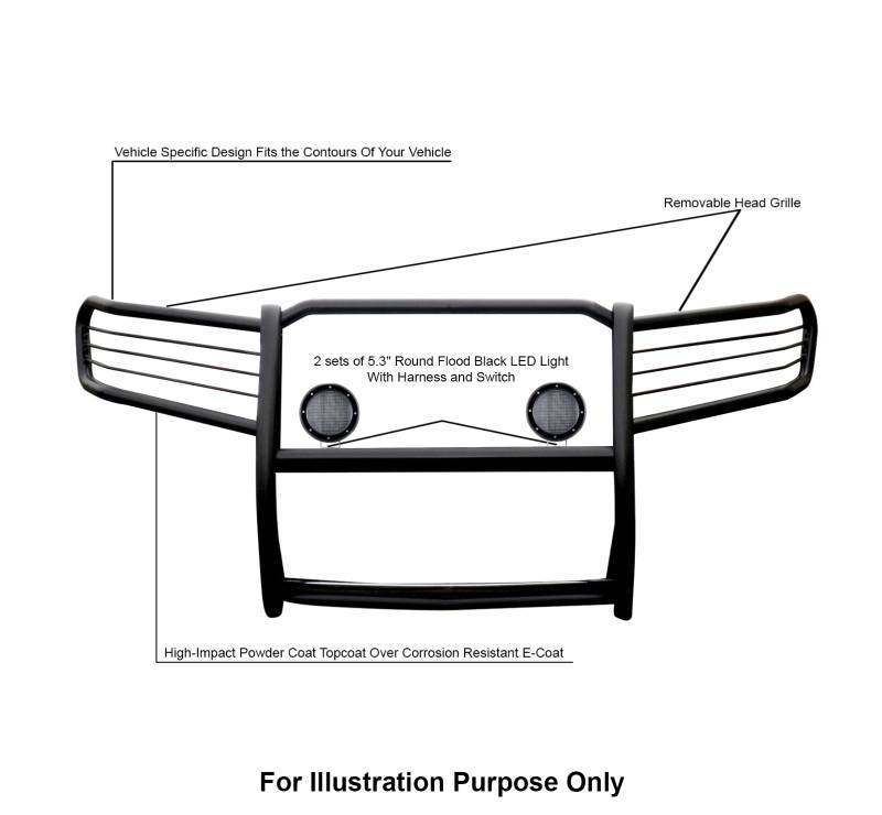Black Horse 17A080200MA-PLFB Black Grille Guard w/LED for 05-10 Jeep G. Cherokee