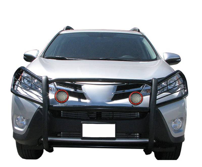 Grille Guard Kit Black Horse Off Road Grille Guard Kit Black Steel Modular Pair of 5.3" Dia. LED Flood Lights w/ Red Trim Rings Wiring Harness and Switch It May Interfere with Vehicles equipped with Emergency Braking Systems, Adaptive Cruise Control and Parking Sensors Black Horse Off-Road Modular Design Black Powder Coat Grille Guard Kit 17A093902MA-PLFR Compatible with 2006-2018 Toyota RAV4 No-Drill/ Vehicle-Specific Application for Custom Fit'solid frame-mounted bolt-on, no drill installation / Welded 3-piece bolt-together construction ?" thick HRPO vertical steel plates