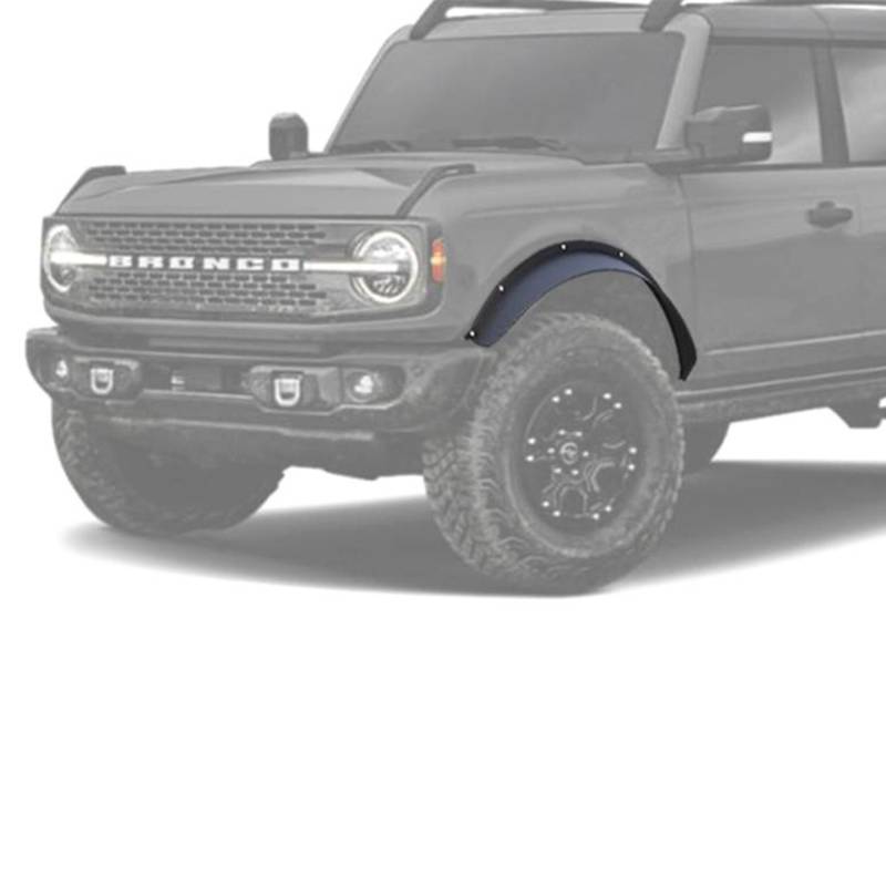 Fender Flares Black Horse Off Road Fender Flares Black Steel Sheet Metal Plate 2DR & 4DR, Front & Excl. Heritage Edition, Heritage Limited Edition, Everglades, and Raptor Black Horse Off Road Black Sheet Metal Plate Front Fender Flares (FF-FBF21) Compatible with 2021-2024 Ford Bronco Sheet Metal Plate Style (2DR & 4DR) Textured Front Fender Flares. 2 pieces Constructed of heavy duty 11-gauge high quality mild steel sheet metal.
