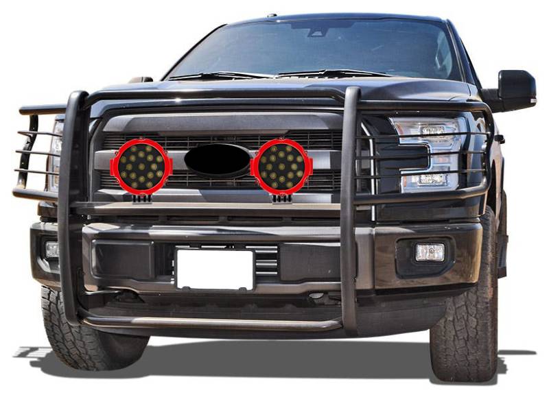 Grille Guard Kit Black Horse Off Road Grille Guard Kit Black Steel Modular Incl. pair of 7.0"Dia. LED Lights w/Red Trim Rings w/ Wiring Harness and Switch It May Interfere with Vehicles equipped with Emergency Braking Systems, Adaptive Cruise Control and Parking Sensors Black Horse Off-Road Modular Design Black Powder Coat Grille Guard Kit 17FB28MA-PLR Compatible with 2017-2023 Ford F-250 Super Duty 2017-2023 Ford F-350 Super Duty 2017-2023 Ford F-450 Super Duty 2017-2023 Ford F-550 Super Duty No-Drill/ Vehicle-Specific Application for Custom Fit'solid frame-mounted bolt-on, no drill installation / Welded 3-piece bolt-together construction 1 1/2 ?diameter 16ga. cold-rolled, mandrel-bent mild steel tubing
