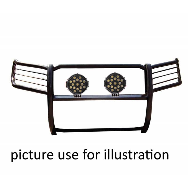 Grille Guard Kit Black Horse Off Road Grille Guard Kit Black Steel Modular Incl. pair of 7.0"Dia. LED Lights w/ Black Trim Rings w/ Wiring Harness and Switch It May Interfere with Vehicles equipped with Emergency Braking Systems, Adaptive Cruise Control and Parking Sensors Black Horse Off-Road Modular Design Black Powder Coat Grille Guard Kit 17FJ28MA-PLB Compatible with 2011-2015 Ford Explorer No-Drill/ Vehicle-Specific Application for Custom Fit'solid frame-mounted bolt-on, no drill installation / Welded 3-piece bolt-together construction 1 1/2 ?diameter 16ga. cold-rolled, mandrel-bent mild steel tubing